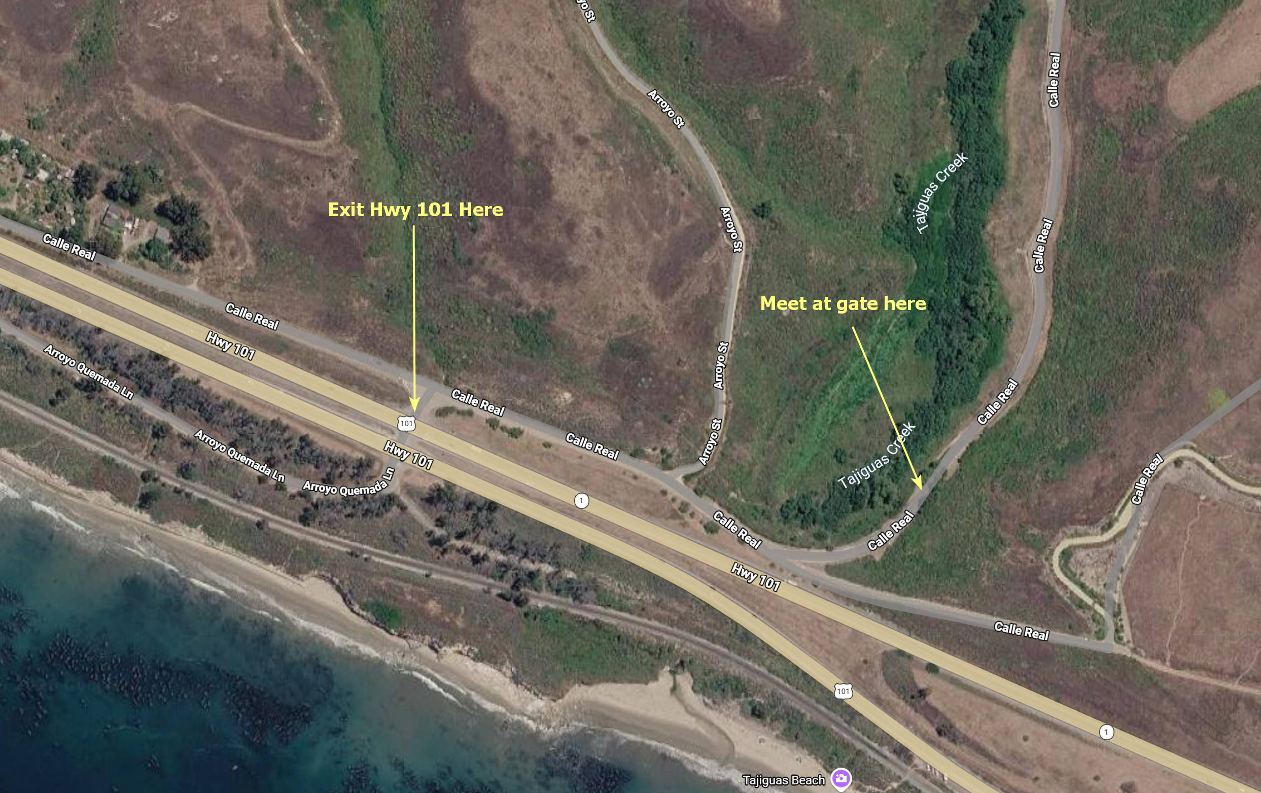 - The exit is unmarked and is at GPS 34.466025, -120.103307